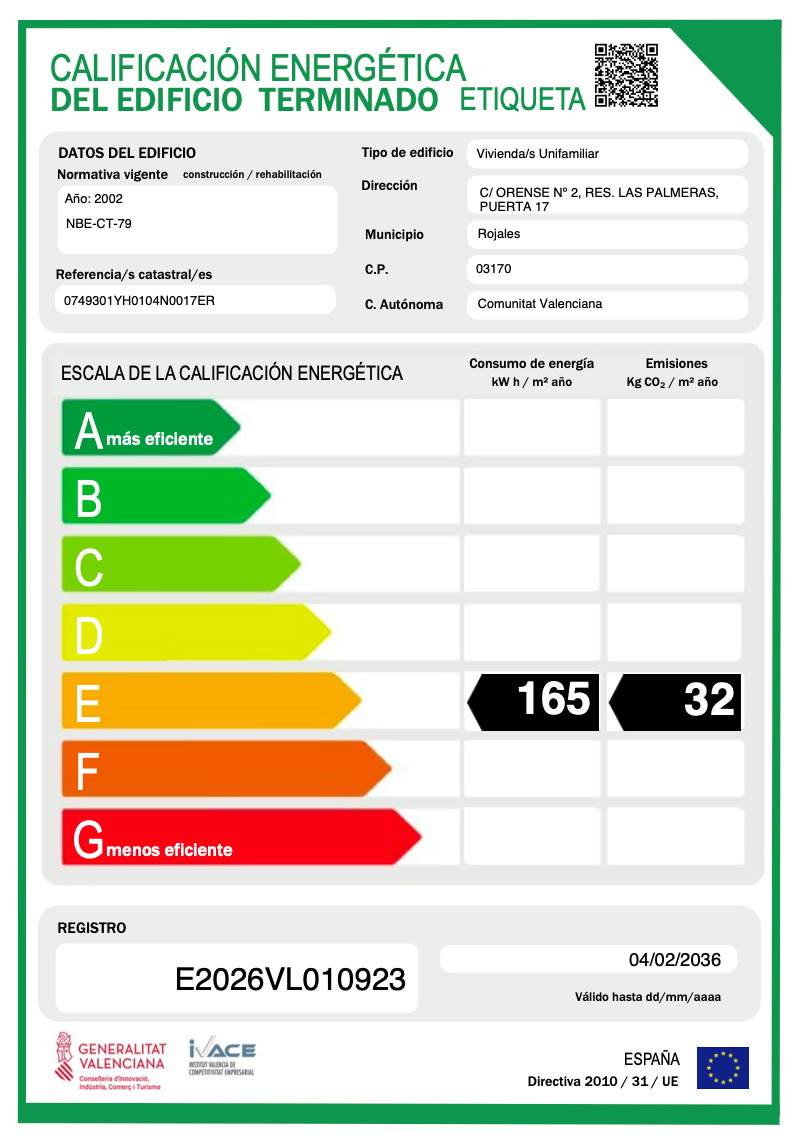check icon Calificación energética: E